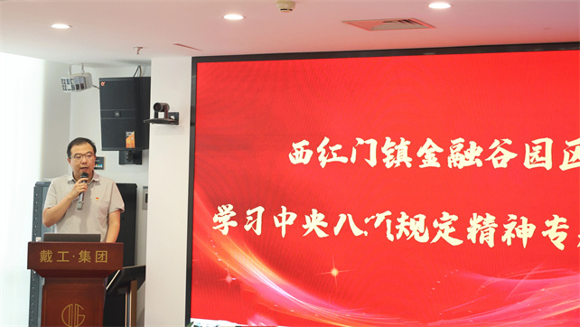 戴輝書記在致辭中,首先對西紅門鎮(zhèn)非公黨建工作指導站常務副站長陳亞檬同志;戴工建設集團董事長戴澤平同志、同興社區(qū)黨支部丁燕濤、侯明月同志,以及金融谷園區(qū)各“兩新”黨組織書記、黨員們的到來表示熱烈歡迎與衷心感謝。戴輝書記強調,希望各位黨員和全體員工珍惜此次學習機會,認真領會中央八項規(guī)定精神內涵,將其切實貫徹到實際工作和生活中。